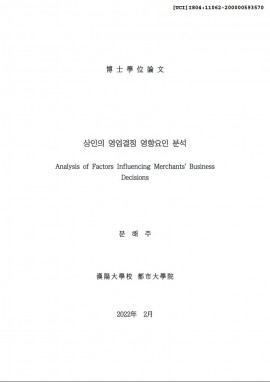 • 상인의 영업결정 영향요인 분석 문해주(2022) 박사학위논문
