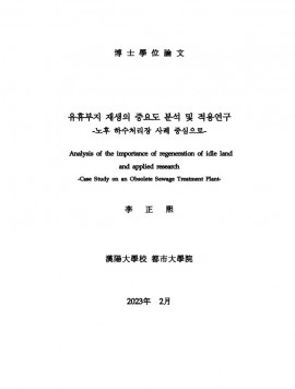 • 유휴부지 재생의 중요도 분석 및 적용연구 : 노후 하수처리장 사례 중심으로 이정희(2023) 박사학위논문