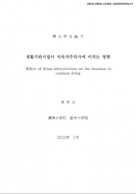 • 생활기반시설이 지속거주의사에 미치는 영향 최병소(2022) 박사학위논문