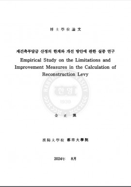 • 재건축부담금 산정의 한계와 개선 방안에 관한 실증 연구 김정규(2024) 박사학위논문