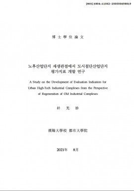 • 노후산업단지 재생관점에서 도시첨단산업단지 평가지표 개발 연구 박광진(2021) 박사학위논문