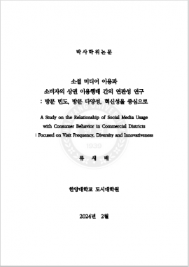 • 소셜 미디어 이용과 소비자의 상권 이용행태 간의 연관성 연구 : 방문 빈도, 방문 다양성, 혁신성을 중심으로 류새배(2024) 박사학위논문