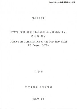 • 분양형 호텔 개발 PF사업의 부실채권(NPLs) 정상화 연구 김창완(2022) 박사학위논문