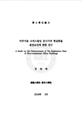 • 비주거용 오피스빌딩 공시가격 현실화율 결정요인에 관한 연구 정광화(2024) 박사학위논문