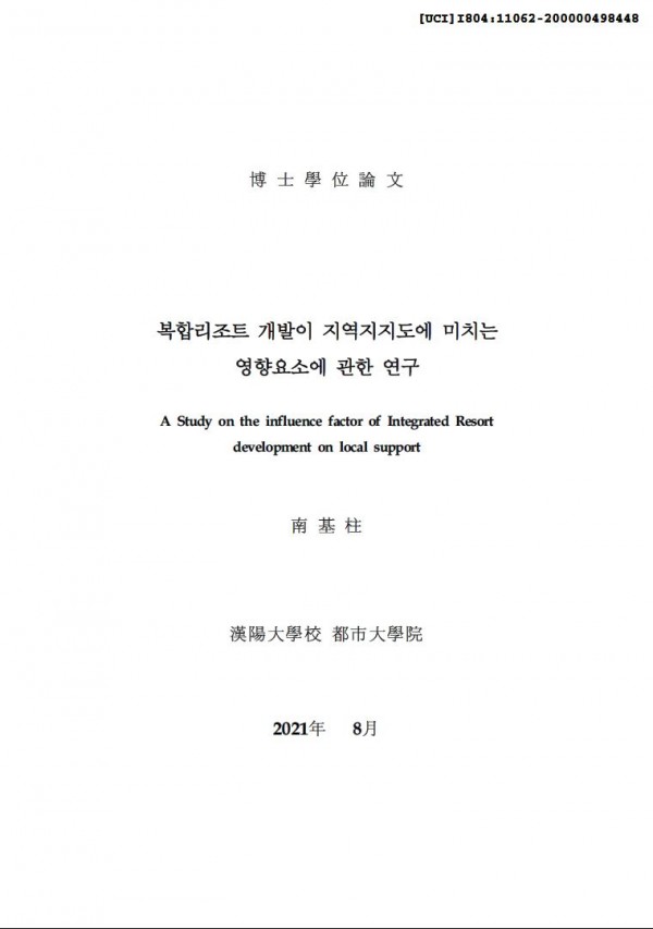 복합리조트 개발이 지역지지도에 미치는 영향요소에 관한 연구 > thesis