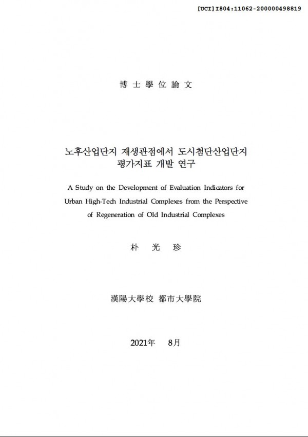 노후산업단지 재생관점에서 도시첨단산업단지 평가지표 개발 연구 > thesis