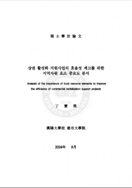 • 상권 활성화 지원사업의 효율성 제고를 위한 지역자원 요소 중요도 분석 정보영(2024) 석사학위논문