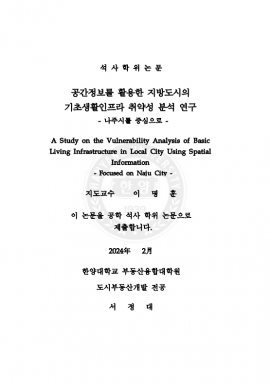 • 공간정보를 활용한 지방도시의 기초생활인프라 취약성 분석 연구 : 나주시를 중심으로 서정대(2024) 석사학위논문