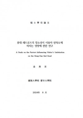 • 홍대 레드로드의 장소성이 이용자 만족도에 미치는 영향에 관한 연구 김미경(2024) 석사학위논문