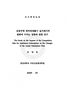 • 공동주택 청약경쟁률이 실거래가격 변화에 미치는 영향에 관한 연구 장대문(2024) 석사학위논문
