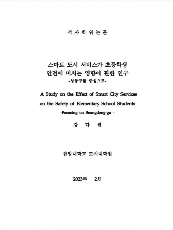 스마트 도시 서비스가 초등학생 안전에 미치는 영향에 관한 연구 -성동구를 중심으로- > thesis_master