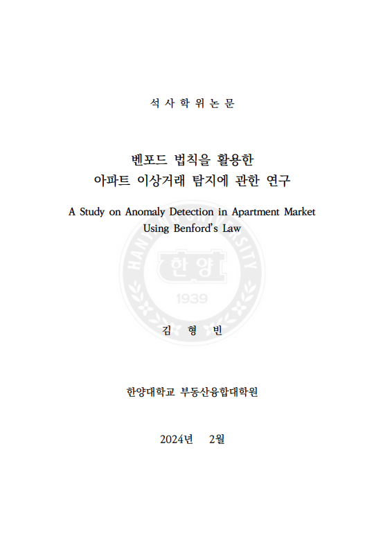 벤포드 법칙을 활용한 아파트 이상거래 탐지에 관한 연구 > thesis_master