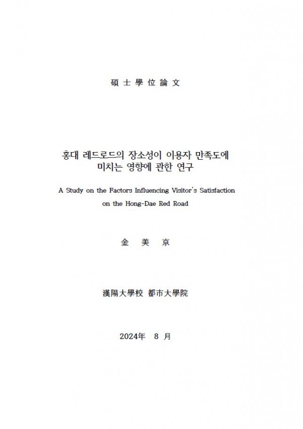 홍대 레드로드의 장소성이 이용자 만족도에 미치는 영향에 관한 연구 > thesis_master