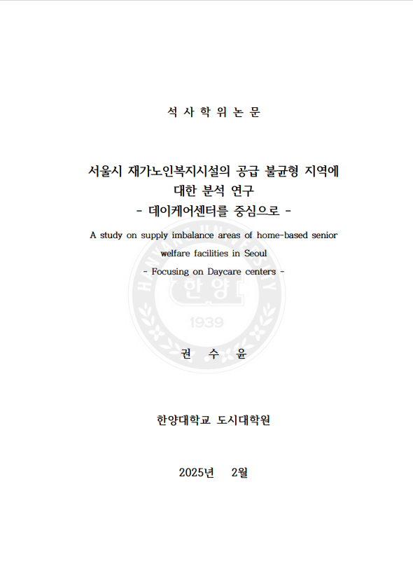 서울시 재가노인복지시설의 공급 불균형 지역에 대한 분석 연구 -데이케어센터를 중심으로 - > thesis_master