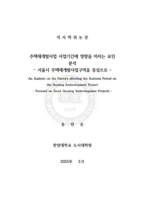 주택재개발사업 사업기간에 영향을 미치는 요인 분석 - 서울시 주택재개발사업구역을 중심으로 - > thesis_master